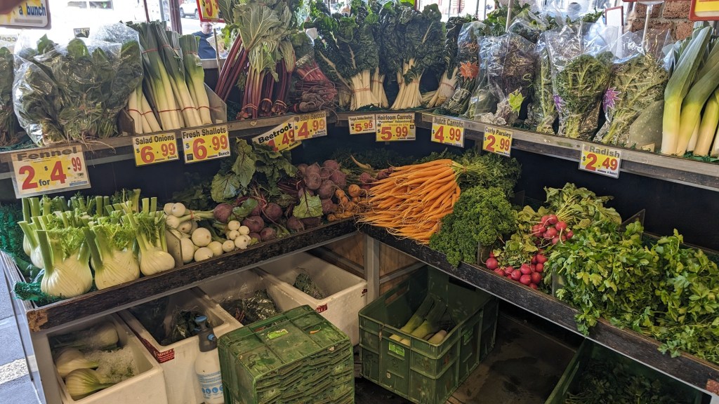 On a recent visit to Melbourne I made it my goal to visit several of the markets in and around Melbourne. I wasn’t planning to go to South Melbourne Market since I had been there with my husband just a few months earlier, in July 2024, and had plenty of pictures from that visit. But, as I was heading to the Gasworks Farmer’s Market in Albert Park, I took a wrong turn. By the time I realized it, I was closer to South Melbourne Market than I was to Gasworks Park. (I later realized that the Gasworks Farmer’s Market is only on the 3rd Saturday of the month and this was the 1st Saturday, so maybe my feet knew what they were doing!)
