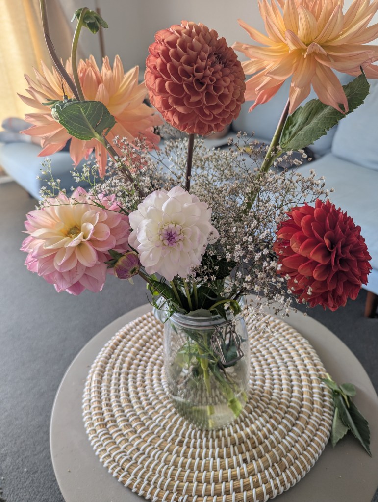I also love to pick up fresh flowers from the market. Dahlias happened to be in season for our anniversary so I made this beautiful bouquet.