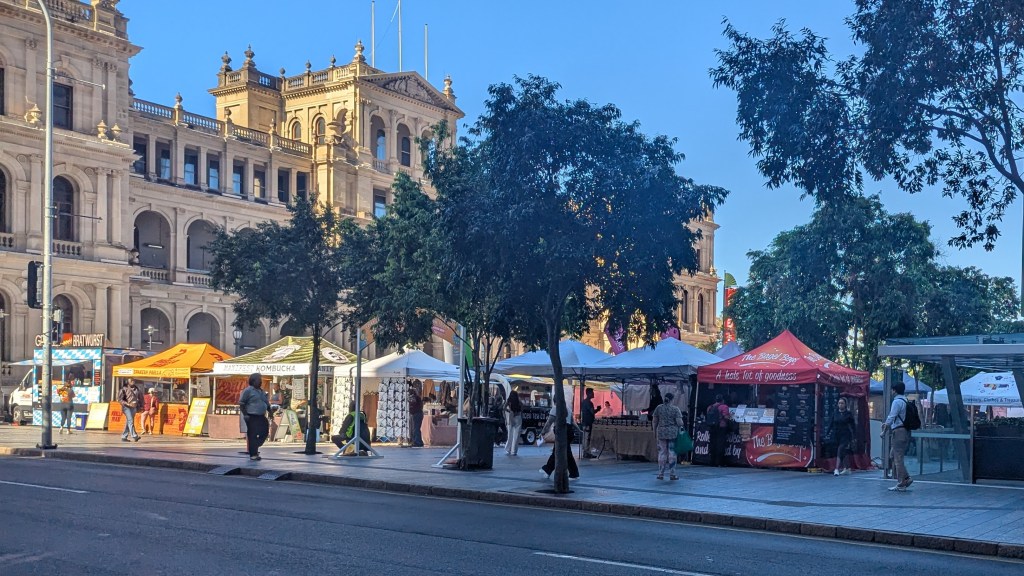 Brisbane has two City Markets, one on Wednesday from 8am-6pm at Reddacliff Place and one on Thursday from 8am-2pm at Cathedral Square. They apparently launched a 3rd market at Queen’s Wharf on Thursday from 8am-2pm, but I was unable to locate this market.