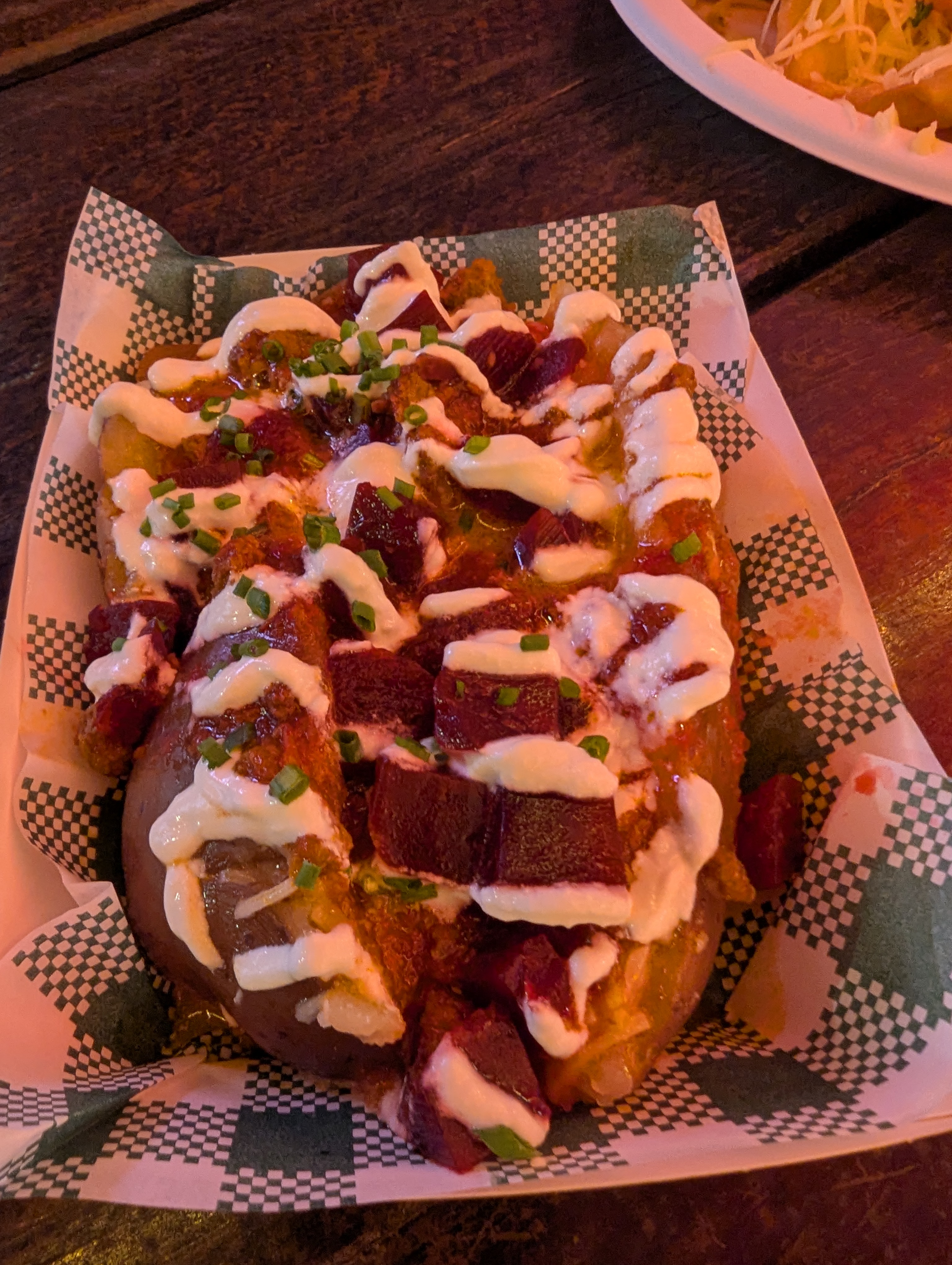 For the loaded potato, chose the Explorer which had bolognese sauce, beetroot, cheese, sour cream and chives