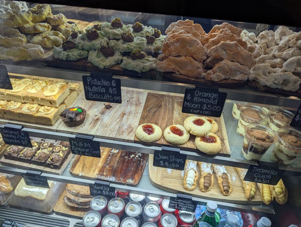 A Mano is known for their vanilla slice. Unfortunately they were sold out when we arrived at 10:39 and it would be another 30 minutes before they would be ready. We tried the Authentic Italian biscuits – Limoncello and Orange Almond.