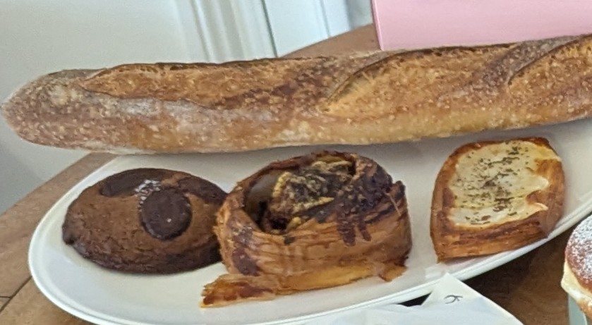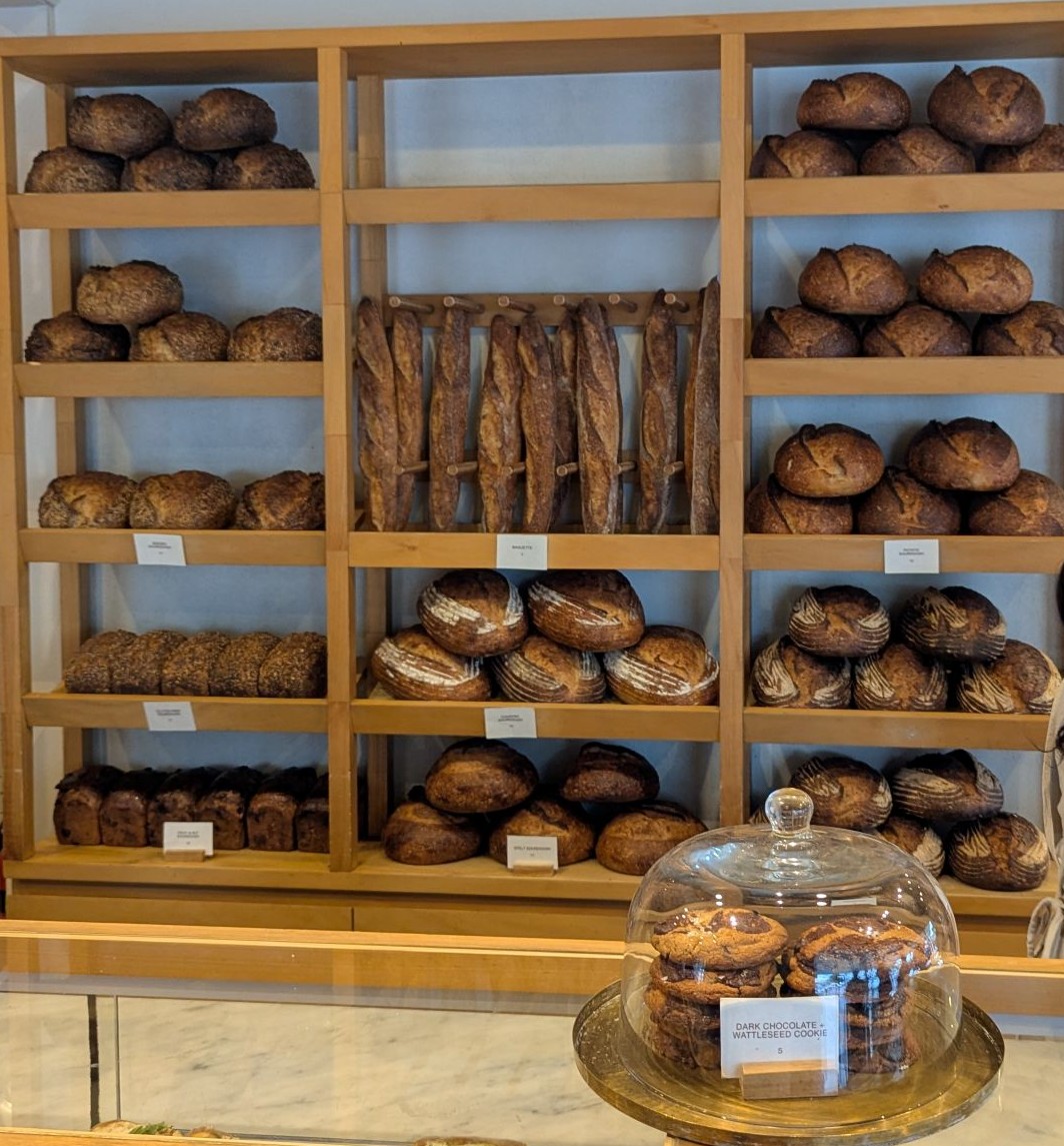 Agnes was across the street from Sprout so we didn’t even need to get back into the car! Their selection of breads and pastries was amazing. We chose a baguette, potato+toum danish, tomato+nori scroll, and a dark chocolate wattleseed cookie. We also got a pork+fennel sausage roll and coconut water matcha to enjoy on our way to the next bakery.