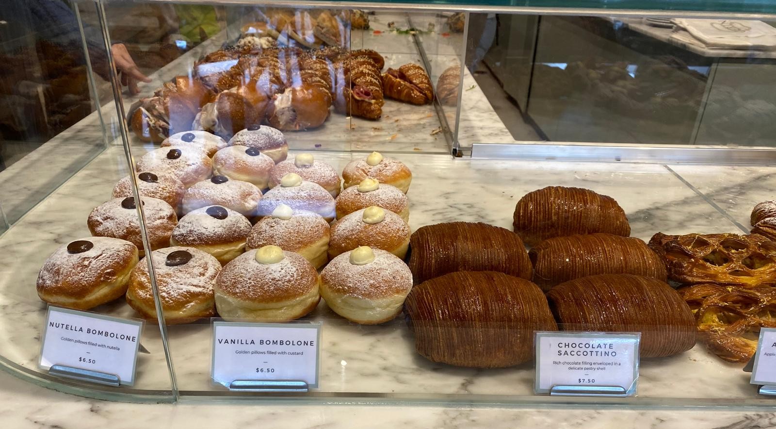 Cerin was another bakery that came highly recommended. This Italian bakery had such an amazing selection and it was tough to narrow down what to order. This was also the longest line that we had to wait in. Ultimately, we chose a nutella bombalone, 2 coda d’aracosta, a maritozzi, and a carbonara croissant.