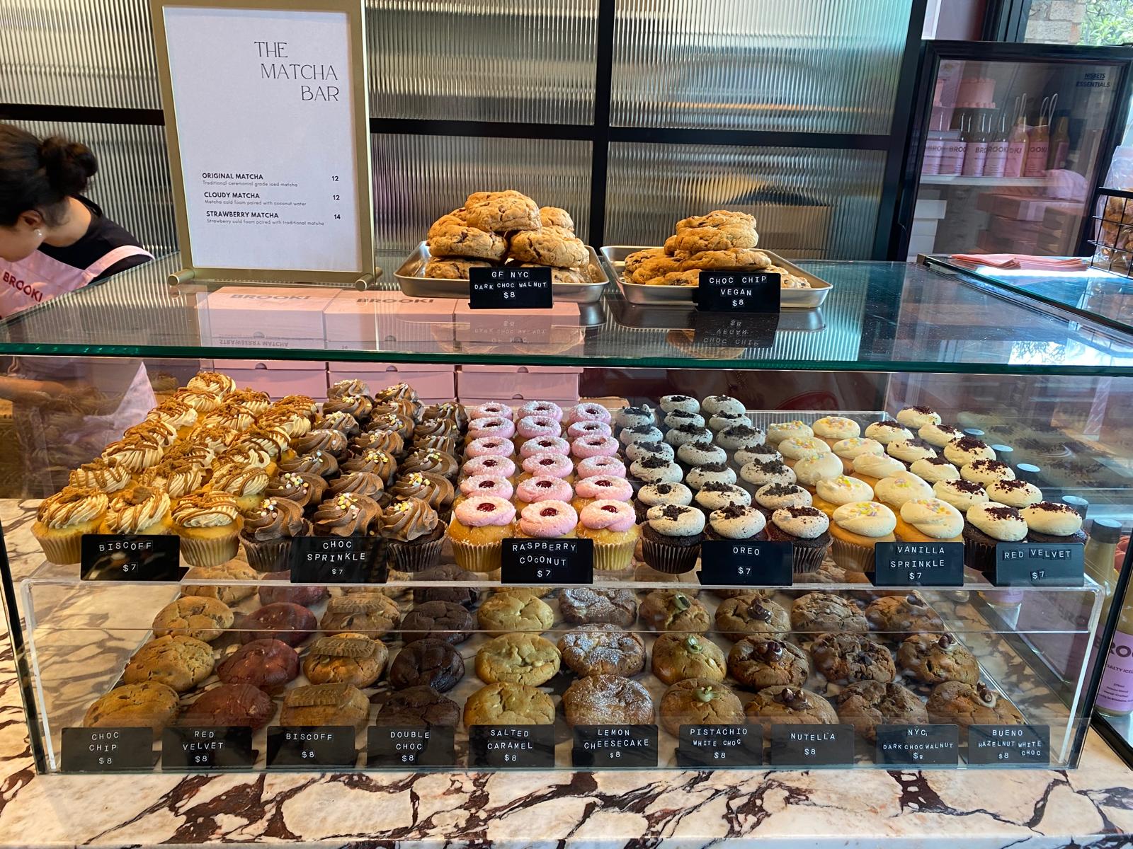 After a short drive we arrived at Brooki Bakehouse by 9:39. Since Brooki is known for her cookies we chose 4 different cookies to try – dark chocolate walnut, double chocolate, biscoff, and lemon cheesecake. We also got a strawberry matcha.